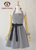 胸元はボーダー、スカート部分はストライプの組み合わせがおしゃれ感を演出!